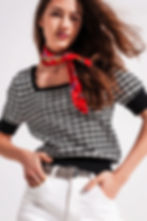 RIbbed Cropped Sweater With Stitching Detail in Ecru